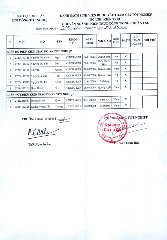 - Danh sách phân công hướng dẫn đồ án tốt nghiệp (đợt tháng 06/2026)_chuyên ngành: Kiến Trúc Công Trình Chuẩn CSU