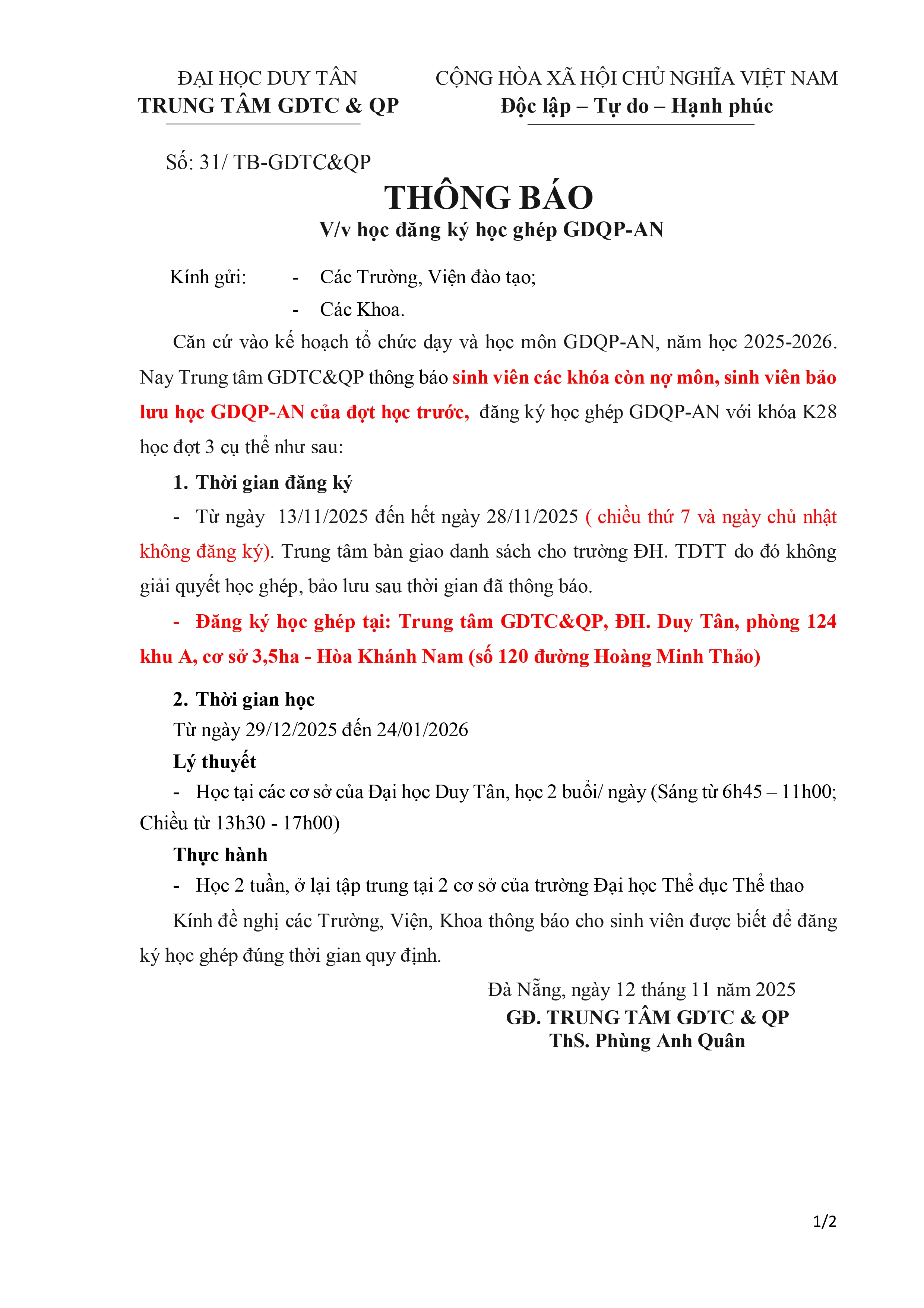 - Thông báo danh sách và lịch học GDQP-AN khóa K28 đợt 3