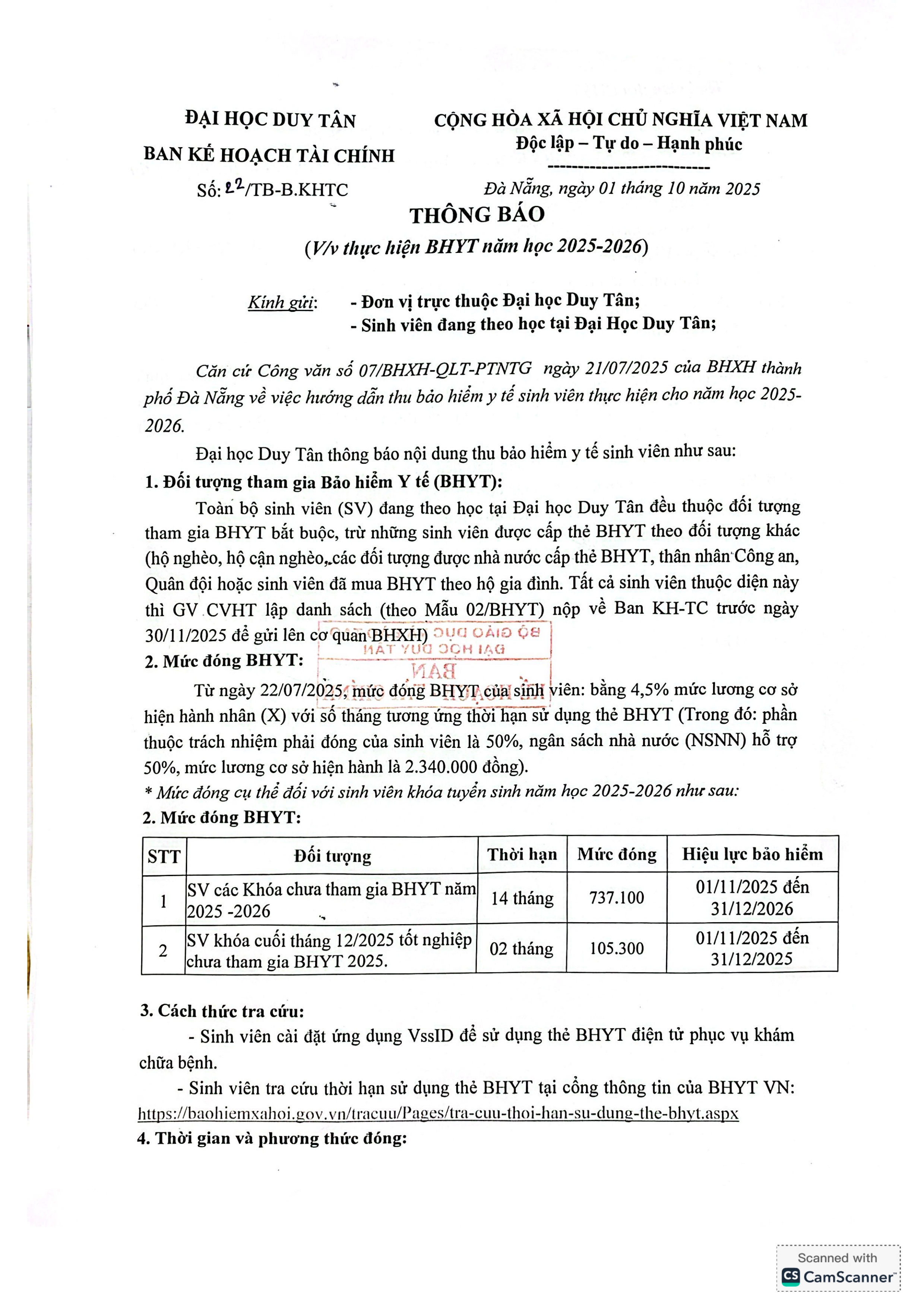 Thông báo V/v Thực hiện BHYT năm học 2025-2026 (T10/2025)