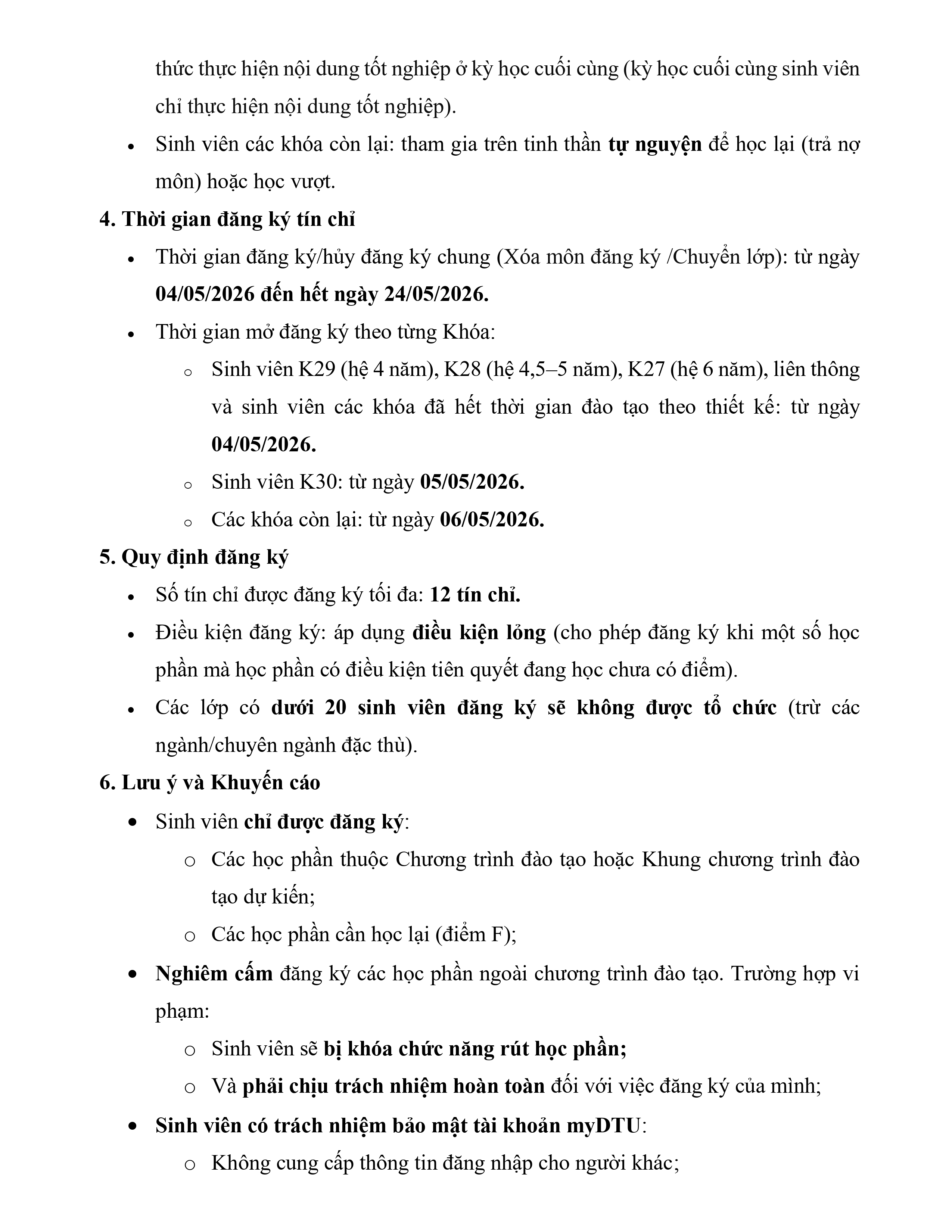 Thông báo V/v Tổ chức và đăng ký học phần HK Hè năm học 2025-2026