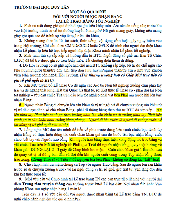 Một số qui định đối với người nhận bằng tốt nghiệp tại lễ trao bằng tốt nghiệp ngày 05/7/2023