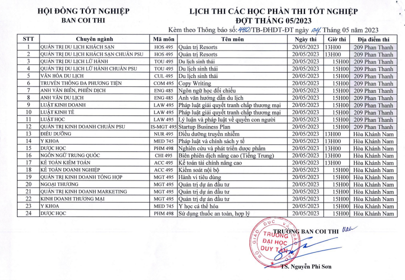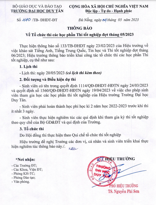 Thông báo về tổ chức thi các học phần Thi tốt nghiệp đợt tháng 5/2023