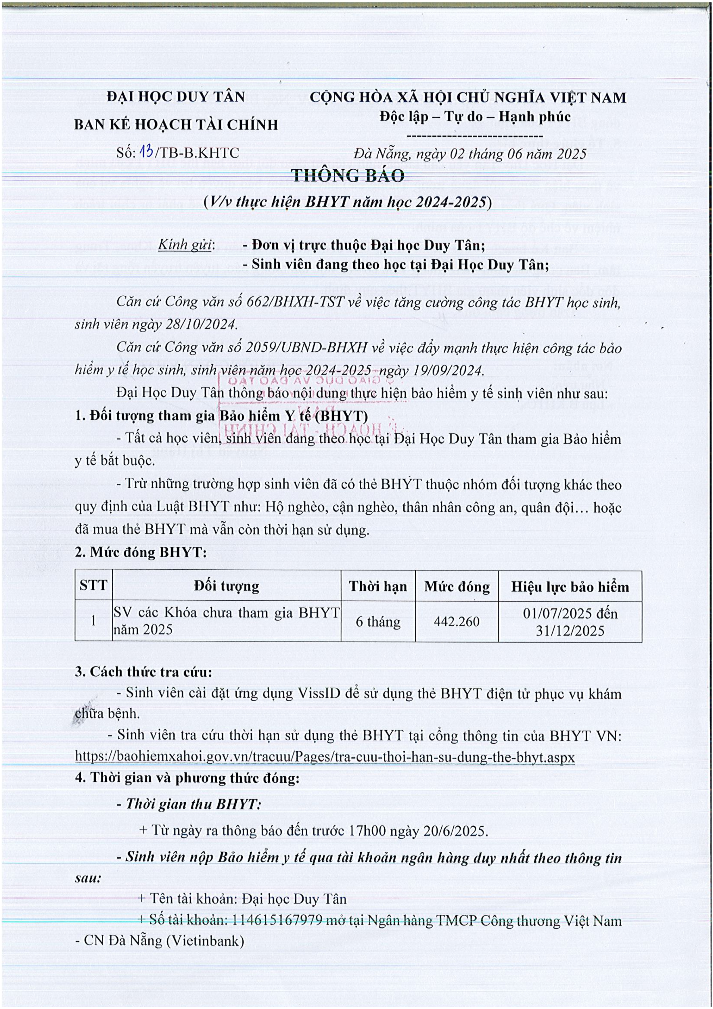 Thông báo V/v Thực hiện BHYT năm học 2024-2025 (TB T6/2025)