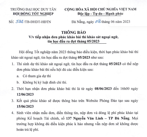 - Thông báo kết quả phúc khảo tháng 12/2025