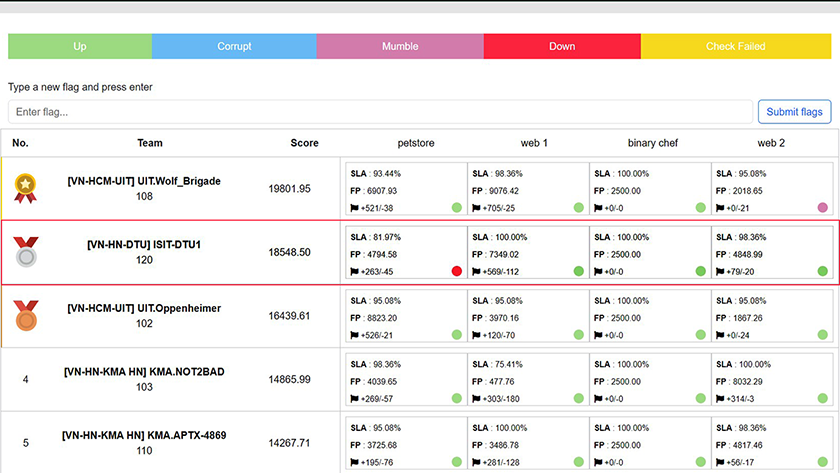 Đội ISIT-DTU1 giành giải Nhì (với điểm số cao thứ nhì) và chính thức tham gia cuộc thi "ASEAN Cyber Shield Hacking Contest" sẽ diễn ra tại Indonesia vào 22.11.2023