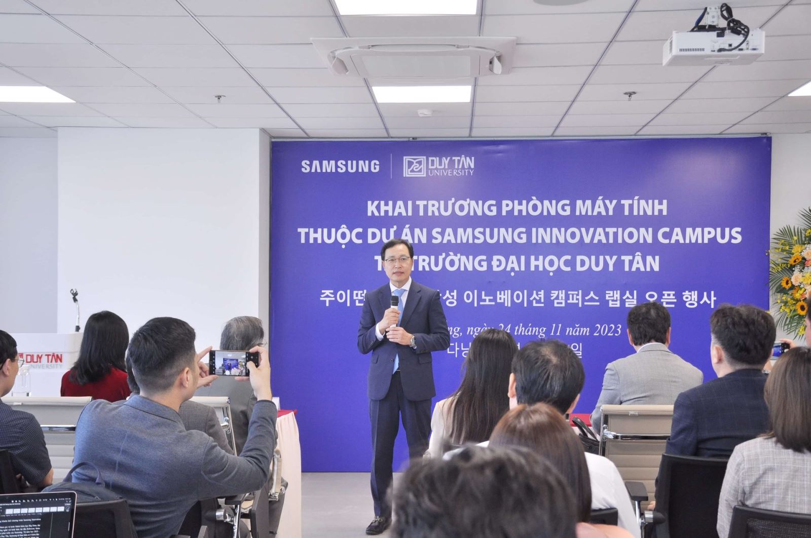 “Tôi được biết, trường Đại học Duy Tân là trường nằm trong Top đầu các đại học tại Việt Nam. Samsung và Đại học Duy Tân đã và đang hợp tác chặt chẽ, cùng nhau nỗ lực góp phần vào sự phát triển của Việt Nam, thông qua hợp tác đào tạo nguồn nhân lực kỹ thuật. Trong trách nhiệm xã hội, hướng đến cộng đồng, Samsung Việt Nam có nhiều dự án hợp tác đào tạo hướng đến thế hệ trẻ, bắt đầu từ bậc học THCS, THPT. Tôi cũng mong rằng, các bạn sinh viên Trường Đại học Duy Tân luôn cố gắng học tập, nắm bắt vững vàng kiến thức về kỹ thuật, công nghệ. Trung tâm của mọi sự thay đổi ngày nay chính là những nhân tài công nghệ. Và Samsung sẽ luôn nỗ lực hết mình góp sức vào việc bồi dưỡng nhân tài công nghệ Việt Nam”, ông Choi Joo Ho – Tổng Giám đốc Tổ hợp Samsung Việt Nam chia sẻ.