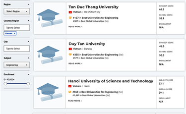 Các Đại học Việt Nam trên bảng Xếp hạng các Lĩnh vực của THE 2022