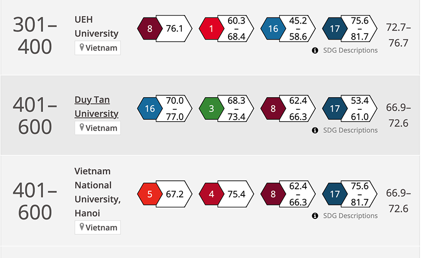 9 đại học Việt Nam vào bảng xếp hạng tầm ảnh hưởng