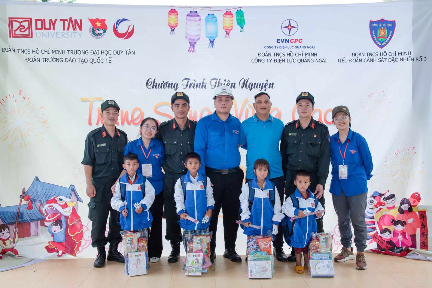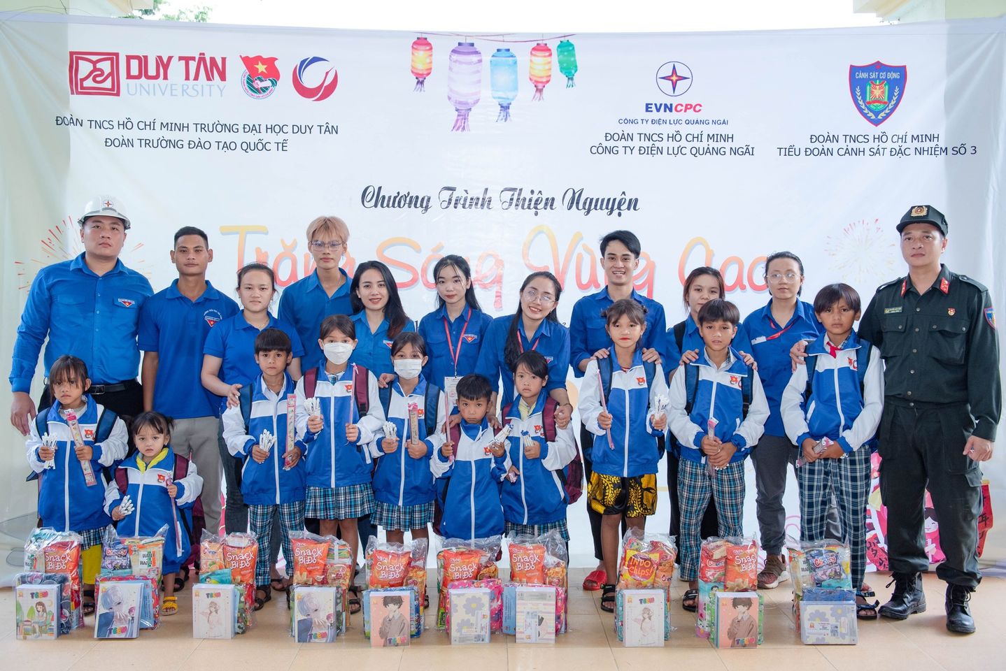 Hơn 1 tháng tổ chức gây quỹ với nhiều việc làm khác nhau, khoảng thời gian tuy không dài nhưng để lại biết bao kỉ niệm đáng nhớ. Để rồi vào ngày hội trăng rằm, một hành trình “vượt núi” về với bà con đã được thực hiện. Tại đây, các bạn BCH Đoàn trường ĐTQT - Đại học Duy Tân phối hợp với Đoàn TNCS Hồ Chí Minh - Công ty Điện lực Quảng Ngãi, Đoàn TNCS Hồ Chí Minh - Tiểu đoàn Cảnh sát Đặc nhiệm số 3 cùng 23 bạn TNV đã tận tay trao những phần quà với tổng chi phí gần 80 triệu, bao gồm: