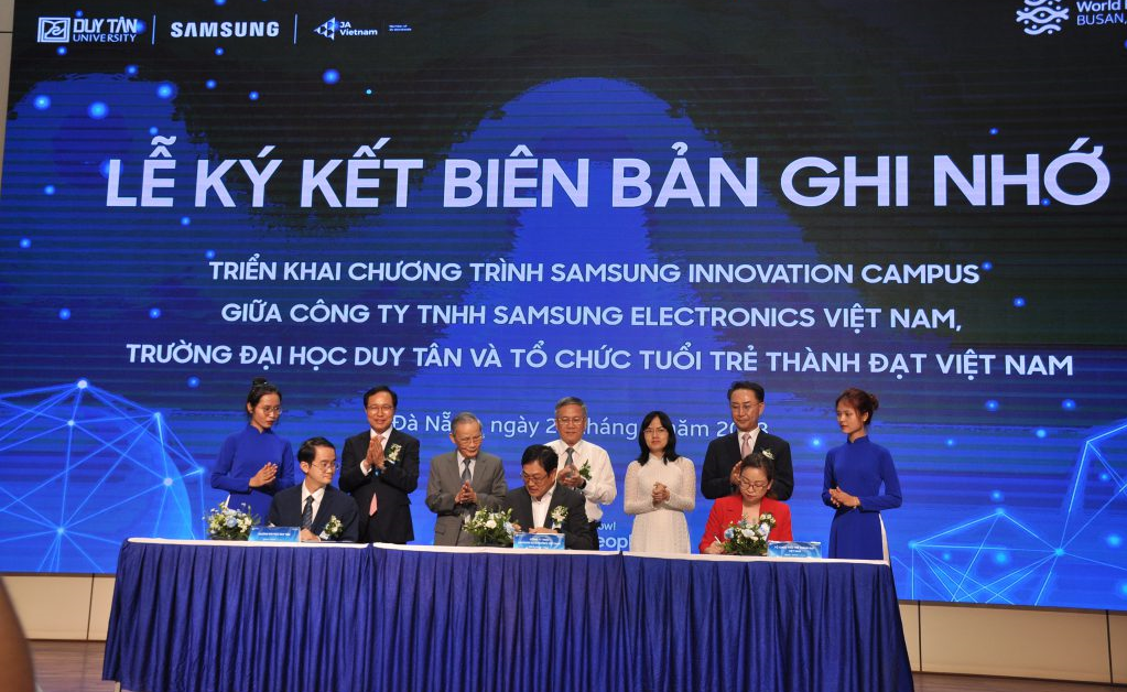 Chiều ngày 23 tháng 5 năm 2023, Tổ hợp Samsung Việt Nam, Công ty Điện tử Samsung Vina, Tổ chức “Tuổi trẻ Thành đạt Việt Nam – Junior Achievement Việt Nam” và Trường Đại học Duy Tân đã chính thức ký kết biên bản ghi nhớ, khẳng định cam kết đồng hành triển khai dự án Samsung Innovation Campus (SIC) 2022 – 2023 (tại Đại học Duy Tân).