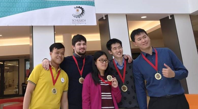 Lê Đình Nhật Khánh (bìa trái) cùng các thành viên Đội vô địch CDIO Academy 2017 (Canada)