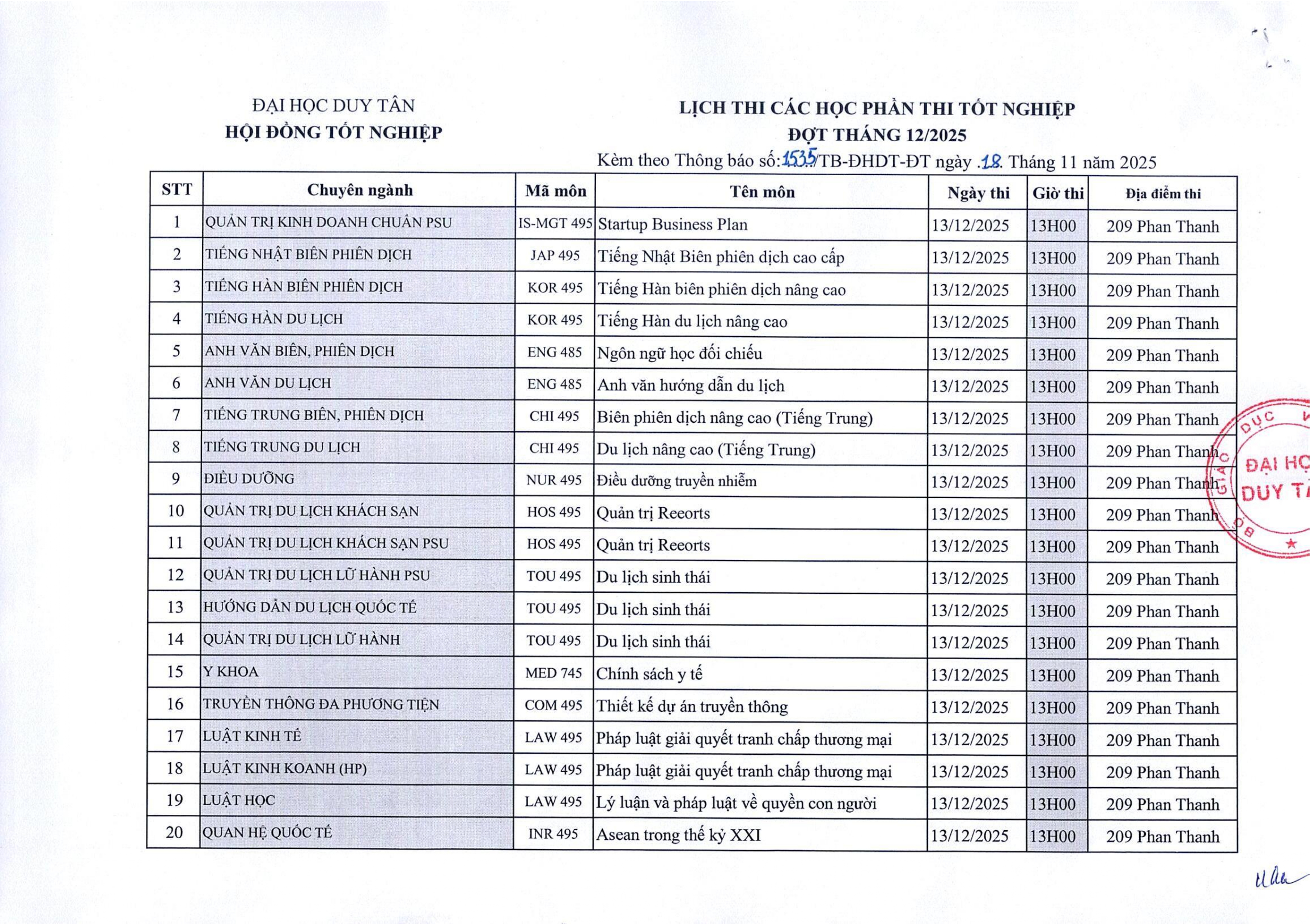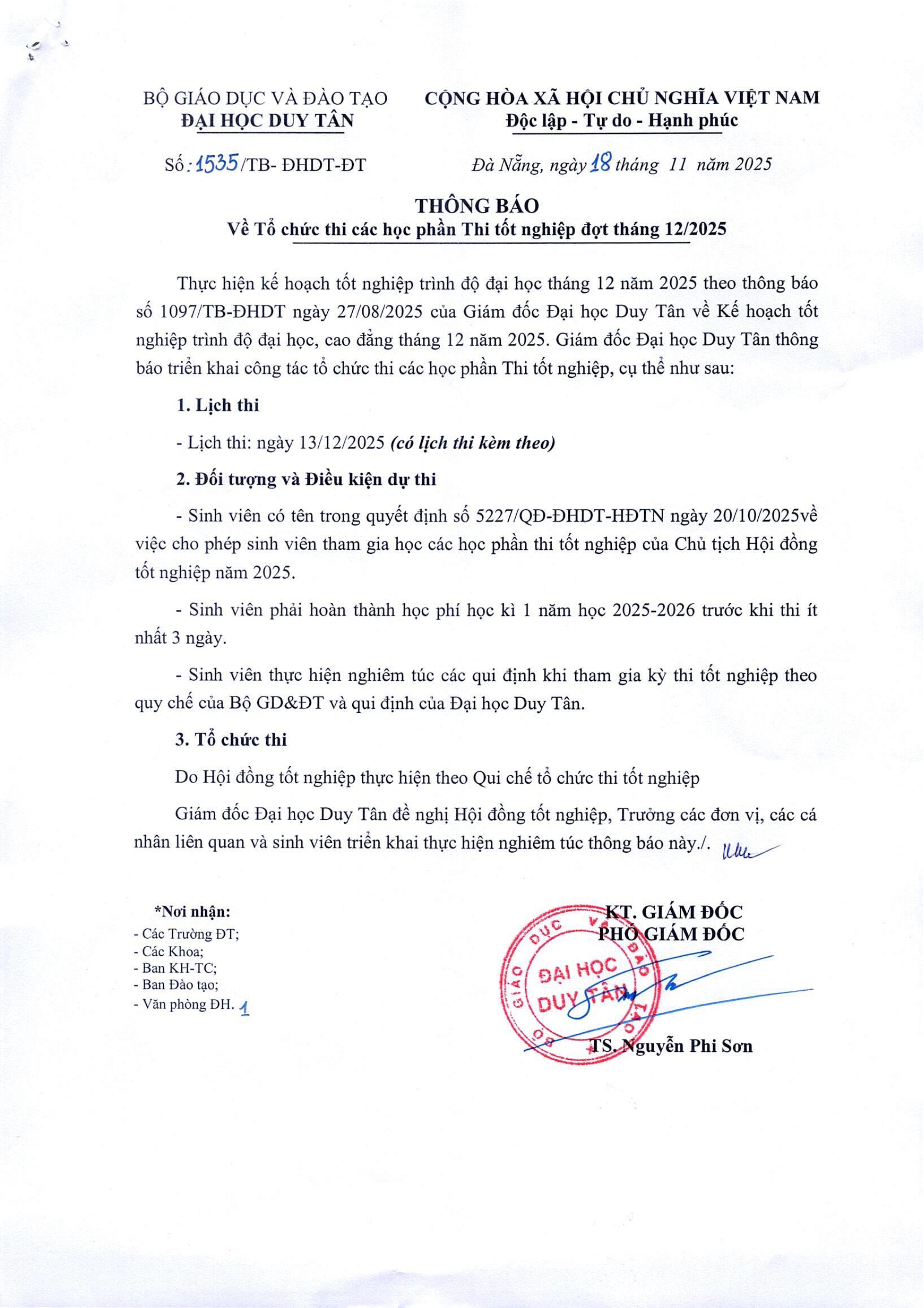 Thông báo V/v Tổ chức thi các học phần Thi tốt nghiệp đợt tháng 12/2025