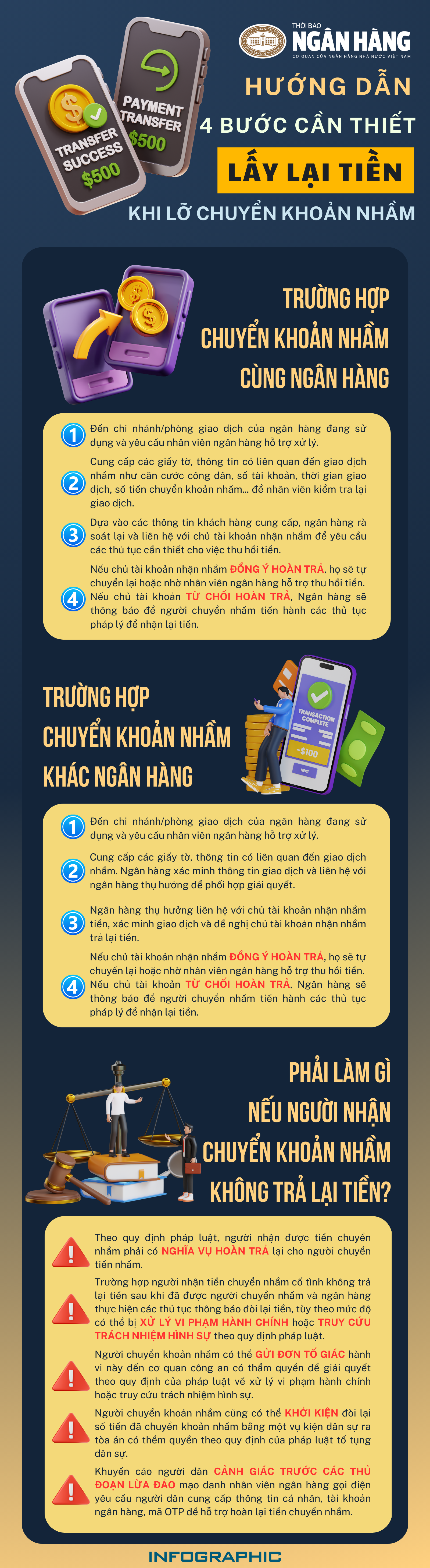 4 bước cần thiết lấy lại tiền khi lỡ chuyển khoản nhầm (Infographic)