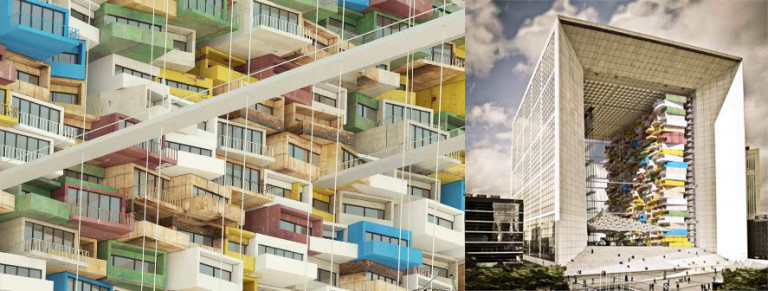 - Ý tưởng của Stephane Malka, Self Defense, 2009 (architectural proposal): Khai thác không gian bên trong La Defense, xây dựng những modul nhà ở đầy màu sắc, với giá phải chăng, sẽ là nơi trú ẩn trong tương lai của thành phố tình yêu Paris.