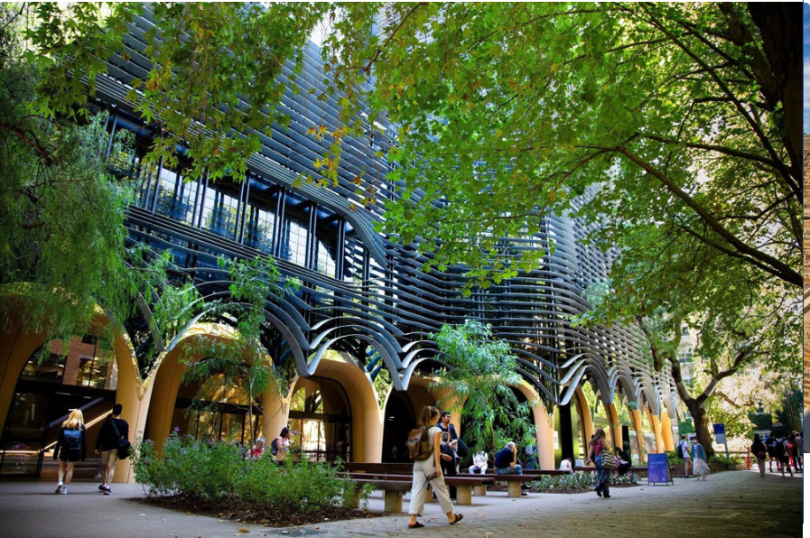 Tòa nhà Arts West (Đại học Melbourne, Australia): Mặt tiền tòa nhà Arts West nổi bật với những “vây” kim loại. Khi nhìn từ xa, những tấm kim loại này tạo thành hình ảnh các đồ vật và tượng, được lựa chọn từ bộ sưu tập của trường. Bên trong tòa nhà là các phòng học đặc biệt được thiết kế riêng với hệ thống kiểm soát nhiệt độ và ánh sáng mặt trời. Điều này cho phép sinh viên có thể tiếp cận và nghiên cứu trực tiếp bộ sưu tập hiện vật cổ mà không gây hư hại cho chúng. Ảnh: University of Melbourne.
