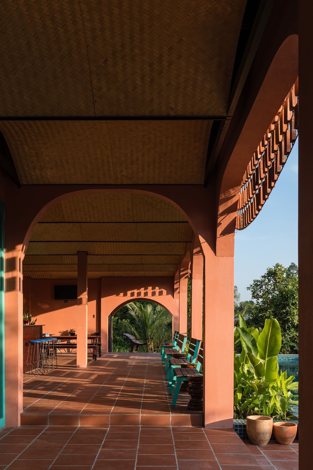 Công trình được thiết kế không phải để gây ấn tượng thị giác từ cái nhìn đầu tiên. Nó lựa chọn cách lắng xuống và hoà vào cảnh quan – nơi kiến trúc không lấn át thiên nhiên, mà là tấm phông nền cho nắng, gió và sinh hoạt đời thường lên tiếng.