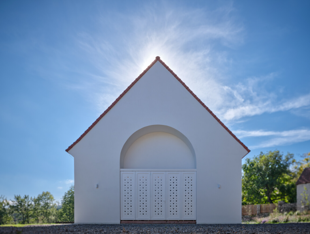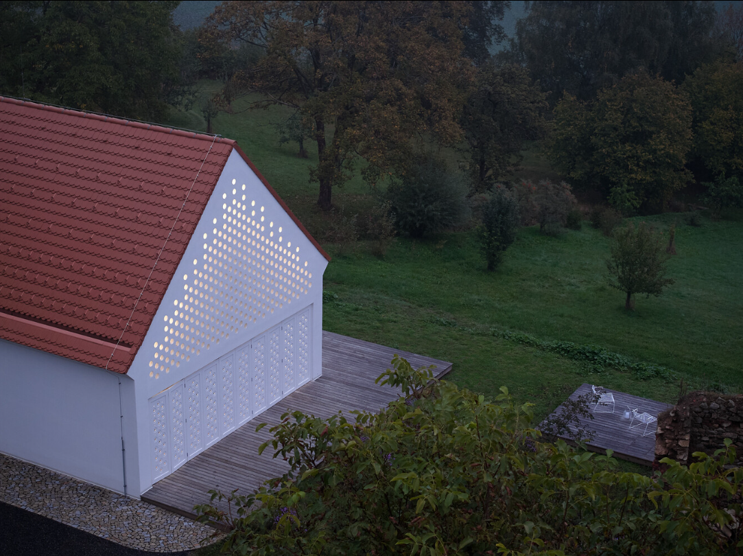 Hình khối ngôi nhà nhỏ gọn, nép mình vào địa hình tự nhiên và bối cảnh lịch sử của khu đất. Lấy cảm hứng từ hình ảnh một nguyện đường – điều còn thiếu trong làng – House Oskar là sự kết hợp nhuần nhuyễn giữa mới và cũ, nội và ngoại, hoàn hảo và bất toàn. Công trình tôn trọng hình thức nhà mái dốc truyền thống, với lớp tường gạch đặc thủng lấy ánh sáng và thông gió tự nhiên, vừa tạo thành điểm nhấn thẩm mỹ vừa mang công năng chắn nắng cho mặt tiền phía Nam. Những hốc tường, loggia và mái hiên trên mọi mặt đứng giúp linh hoạt điều chỉnh mức độ mở ra hay khép kín với cảnh quan, tạo nên một công trình luôn thay đổi tùy theo nhịp điệu của thiên nhiên.
