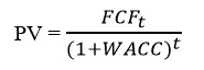 trong đó t là năm dự báo. Mục tiêu là đưa toàn bộ dòng tiền tương lai về giá trị hiện tại.