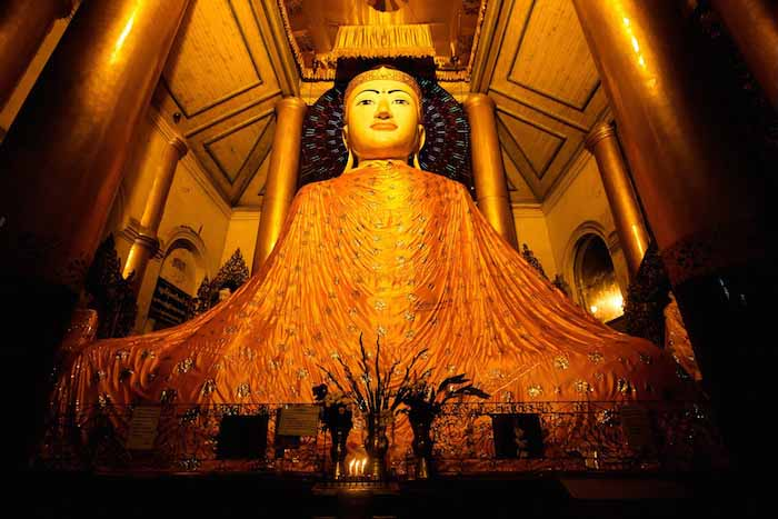 Every few years, its gold covering is meticulously restored, ensuring its luminous presence endures through time. Visitors walking around the stupa will encounter astrological representations of the eight days of the Burmese week, devotional centers positioned at cardinal points, and sacred Bodhi trees.