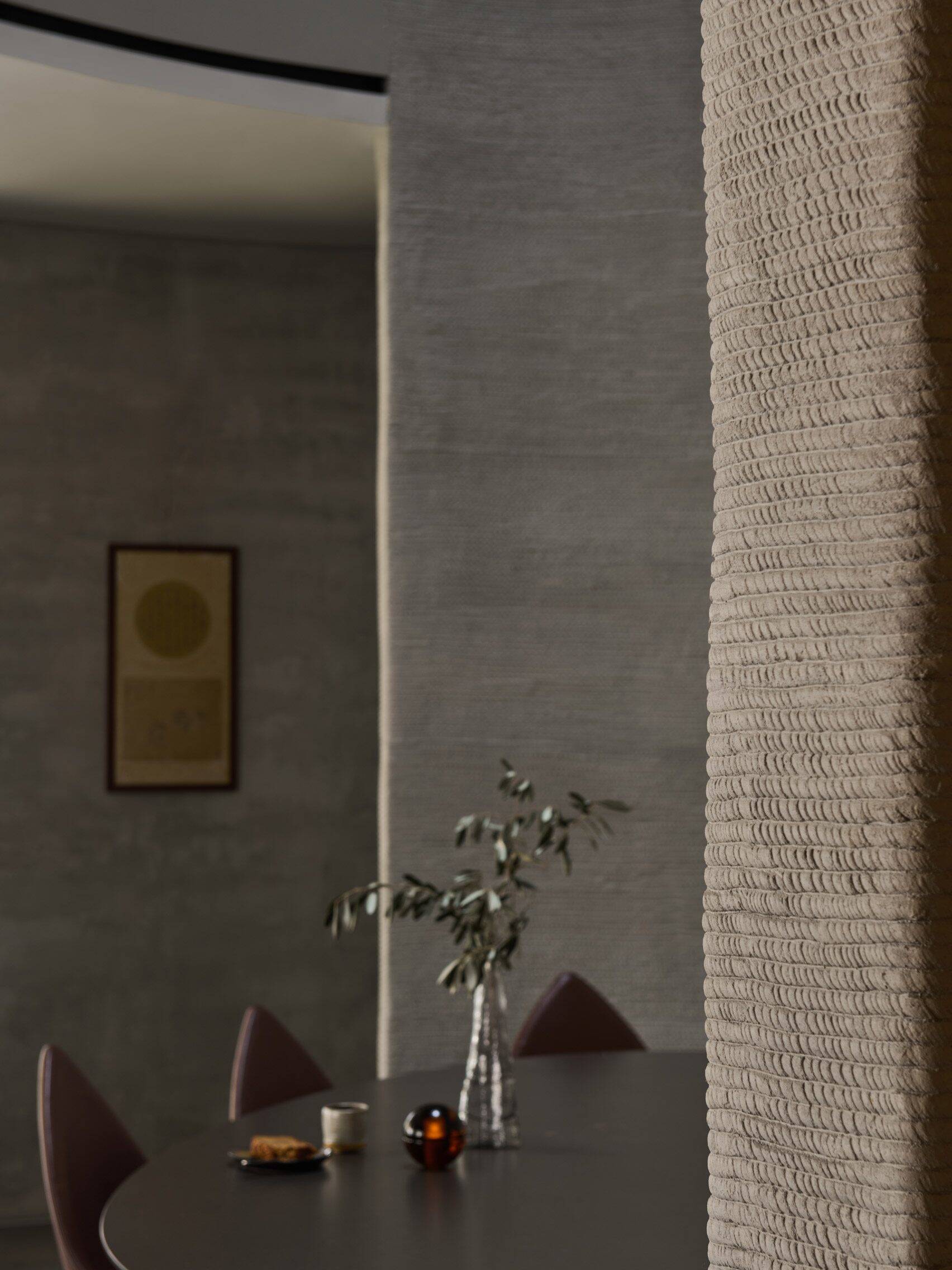 Built using 3D-printed concrete, both the façade and interior walls display distinctive layered concrete textures, celebrating the raw materiality and the authenticity of the 3D printing process.