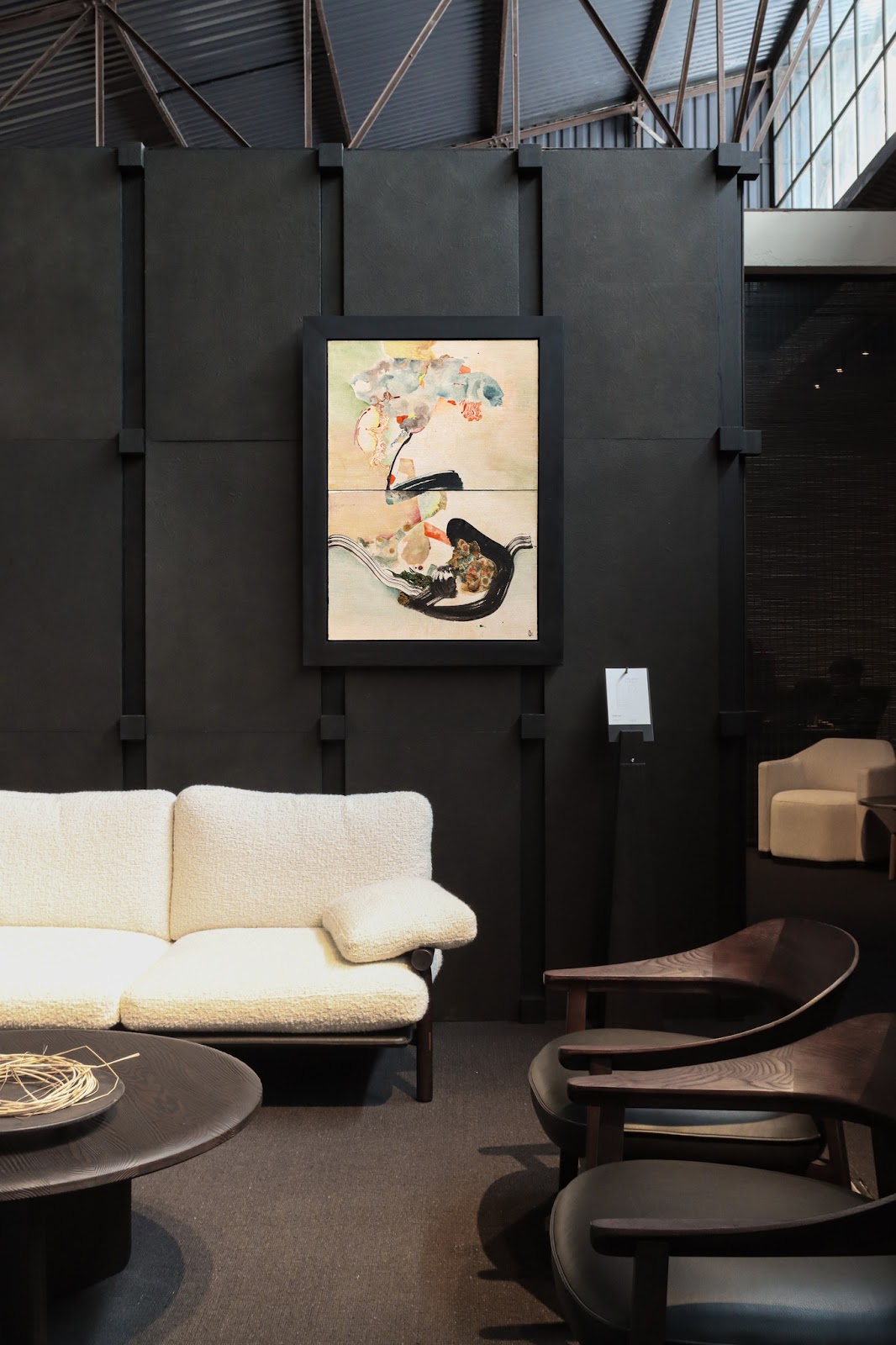 Sắc xám than của tường làm nổi bật các sản phẩm nội thất của thương hiệu