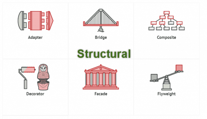 Ví dụ: Adapter, Bridge, Composite, Decorator, Façade, Flyweight, Proxy.