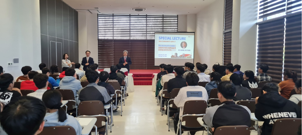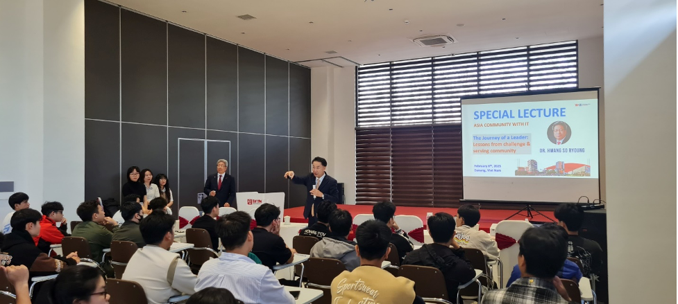 On 6/2/2025, the International Faculty of Duy Tan University had the honor of hosting a special lecture titled "The Journey of a Leader – Lessons from Challenges and Serving Community" presented by Dr. Hwang So Ryong. The event attracted great interest from students, faculty members, and young leaders eager to learn about leadership and community service.