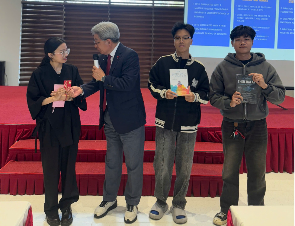 In addition to the main speech, the event included an interactive session where students had the opportunity to ask direct questions and receive insightful advice from Dr. Hwang So Ryong. These exchanges opened up new perspectives, helping students better understand how to apply leadership thinking to their lives and future careers. Moreover, Dr. Hwang So Ryong presented meaningful gifts to participating students as encouragement and motivation for their continued academic and personal growth.
