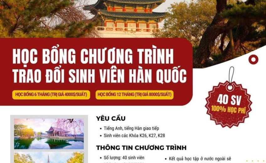 HỌC BỔNG CHƯƠNG TRÌNH TRAO ĐỔI SINH VIÊN TẠI HÀN QUỐC