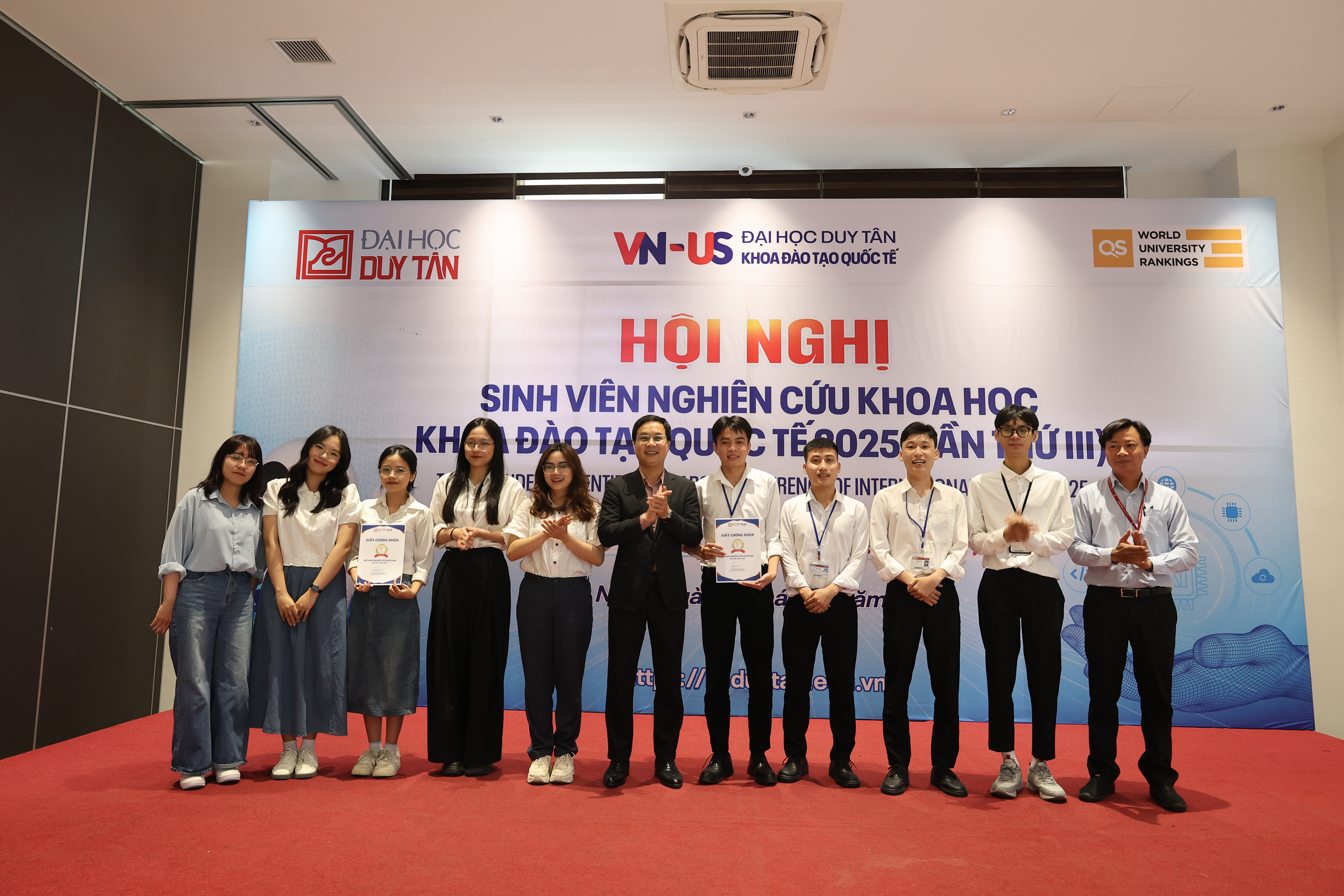Ngày 26 tháng 4 năm 2025, Hội nghị Sinh viên Nghiên cứu Khoa học lần thứ 3 của Khoa Đào tạo Quốc tế, Đại học Duy Tân đã khép lại với sự xuất sắc của rất nhiều nghiên cứu ứng dụng thực tiễn. Các đề tài năm nay không chỉ nổi bật bởi sự sáng tạo, mà còn vì ứng dụng sâu rộng của các công nghệ tiên tiến như Trí tuệ Nhân tạo (AI), Học Máy (Machine Learning), Học Sâu (Deep Learning), và Phân Tích Dữ Liệu thực tiễn. Đặc biệt, nhiều đề tài trong lĩnh vực Công nghệ Thông tin (IT) đã thể hiện sự kết hợp hoàn hảo giữa lý thuyết và thực tiễn, mở ra những ứng dụng giá trị cho cộng đồng và thị trường.