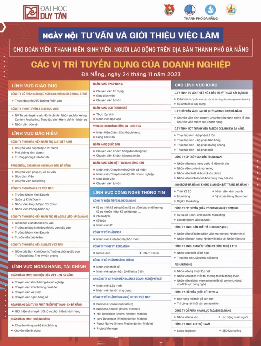 Ngày hội tư vấn và giới thiệu việc làm dành cho Đoàn viên, Thanh niên, Sinh viên, Người lao động trên địa bàn Thành phố Đà Nẵng: