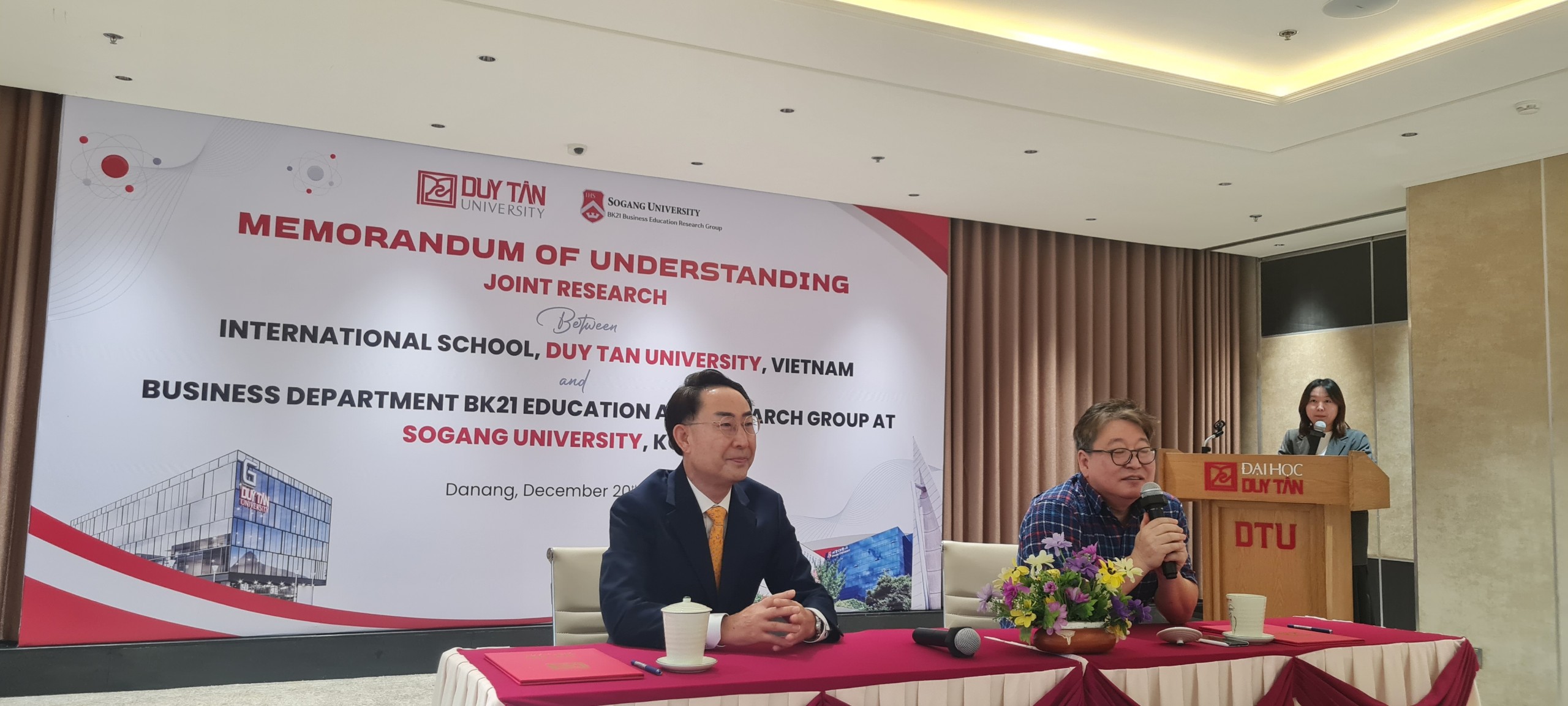 Đại học Duy Tân ký kết Biên bản ghi nhớ bắt tay với Nhóm BK21 của Khoa Kinh doanh tại Đại học Sogang để bồi dưỡng nhân tài có khả năng giải quyết các thách thức xã hội phức tạp. Quan hệ đối tác hai bên sẽ tập trung vào nghiên cứu liên ngành, trao đổi học thuật và các chương trình đào tạo chuyên biệt nhằm xây dựng hệ sinh thái giáo dục toàn cầu sáng tạo.