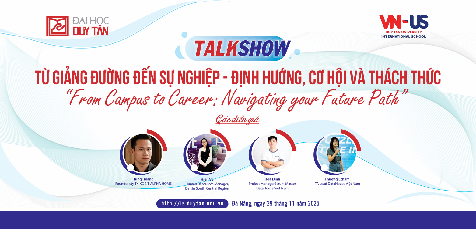 Khoa Đào tạo Quốc Tế (International School) trân trọng thông báo và kính mời tất cả sinh viên K31 cùng mọi sinh viên đang học tại Khoa tham dự buổi Talkshow chia sẻ của Cựu sinh viên – một chương trình đặc biệt dành riêng cho các bạn đang chuẩn bị hành trang vào môi trường đại học và định hình con đường nghề nghiệp tương lai.