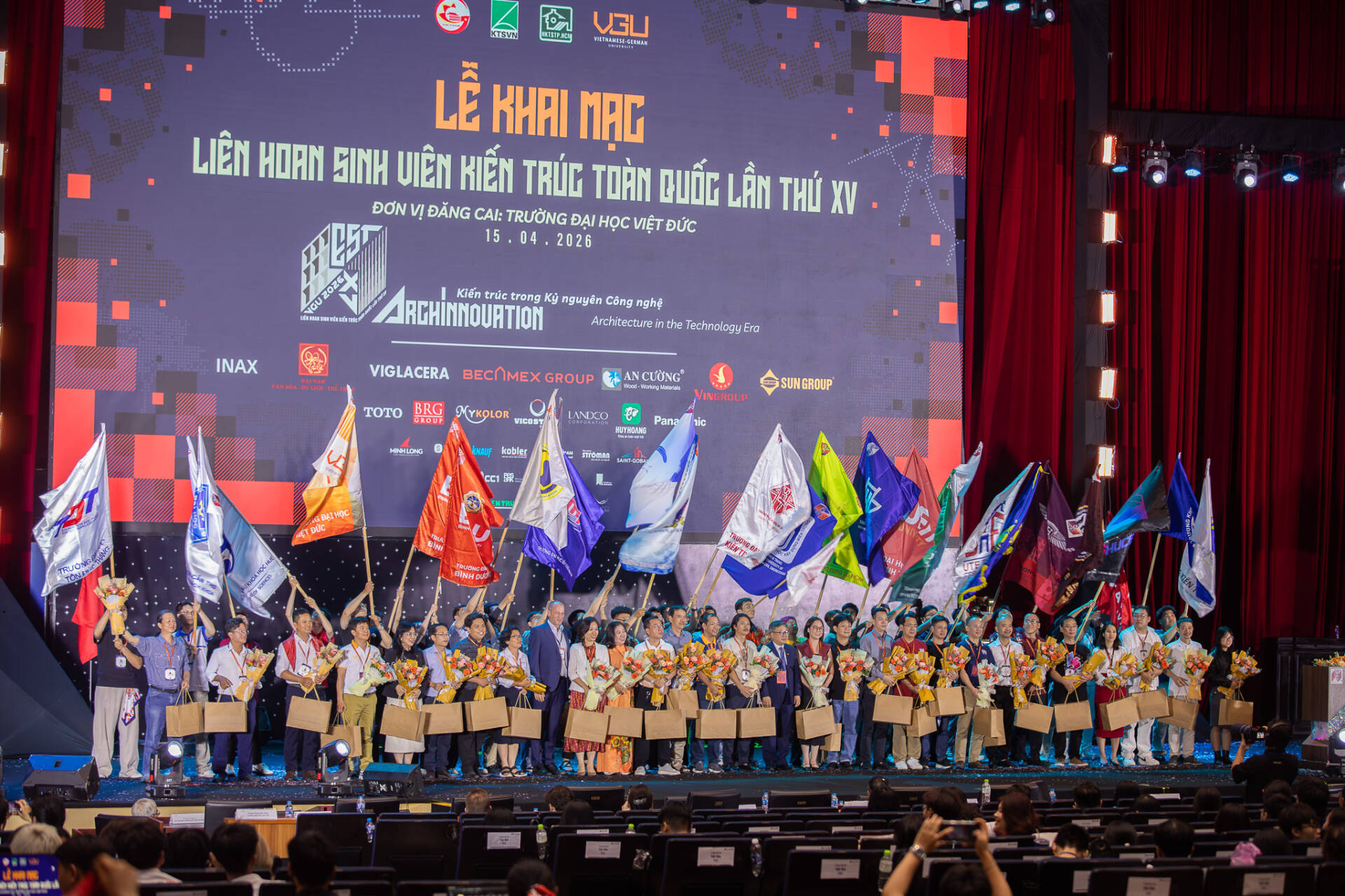 Tối 15/4, tại Trung tâm Hội nghị và Triển lãm Bình Dương (BCEC), Festival Sinh viên Kiến trúc toàn quốc lần thứ XV chính thức khai mạc, mở đầu chuỗi hoạt động chuyên môn, học thuật và giao lưu diễn ra từ ngày 15 đến 18/4/2026. Sự kiện do Hội Kiến trúc sư Việt Nam phối hợp với UBND TP.HCM, Hội Kiến trúc sư TP.HCM và Trường Đại học Việt Đức đồng tổ chức. Chương trình quy tụ hơn 1.000 đại biểu, giảng viên, sinh viên đến từ 27 cơ sở đào tạo kiến trúc trên cả nước.