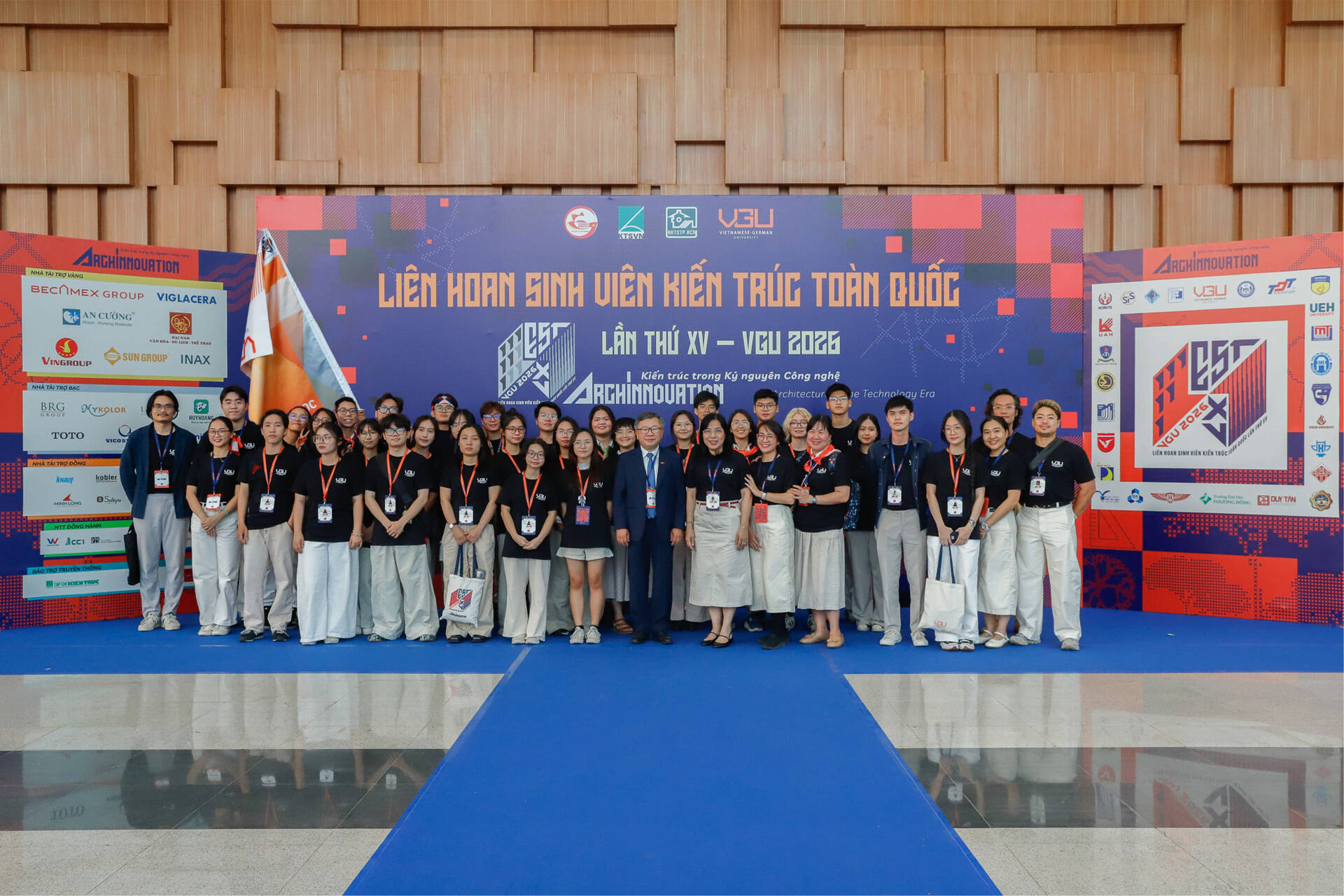 Không khí lễ khai mạc được tổ chức trang trọng nhưng vẫn mang sắc thái trẻ trung, sôi động với các tiết mục âm nhạc do sinh viên biểu diễn, mở ra một không gian kết nối giàu năng lượng của cộng đồng kiến trúc trẻ. Điểm nhấn của chương trình là nghi thức khai mạc được dàn dựng theo hình thức tương tác công nghệ, với các đại biểu thực hiện “nạp năng lượng” trên sân khấu, tượng trưng cho sự khởi động của một hành trình sáng tạo mới trong kỷ nguyên số.
